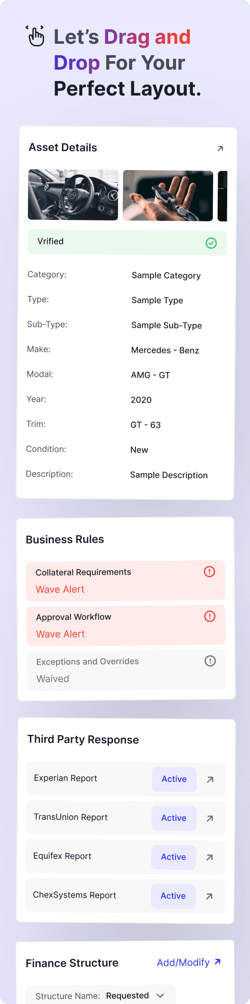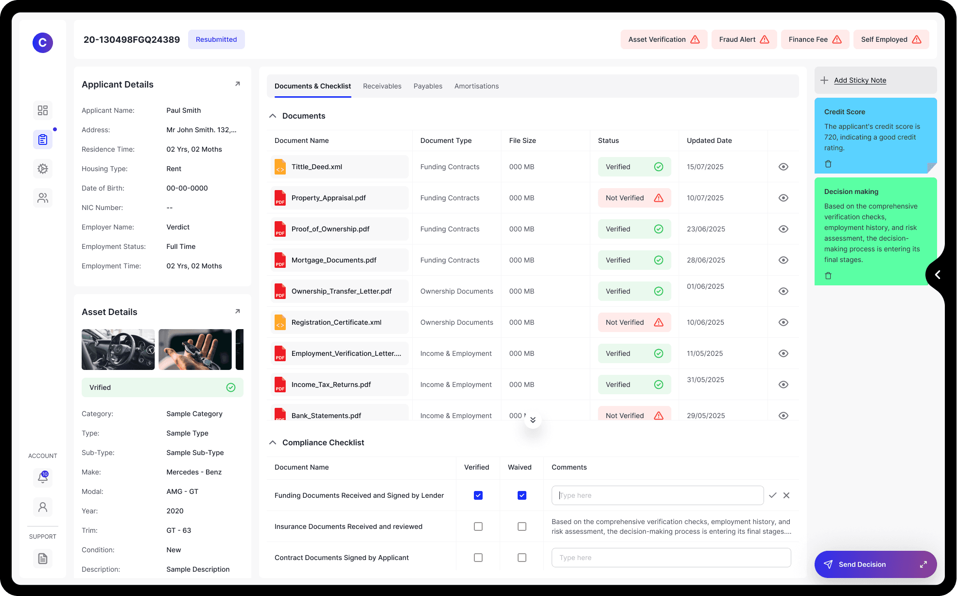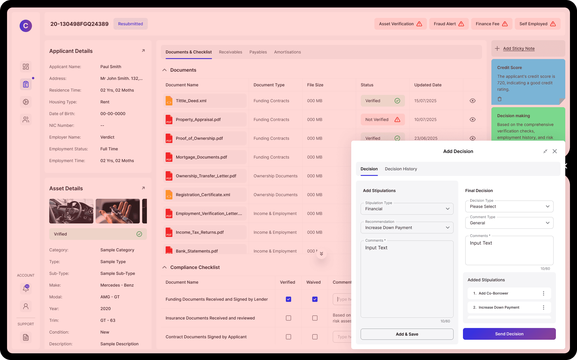A single source of truth that unifies applicant, asset, and deal data in one cohesive dashboard.